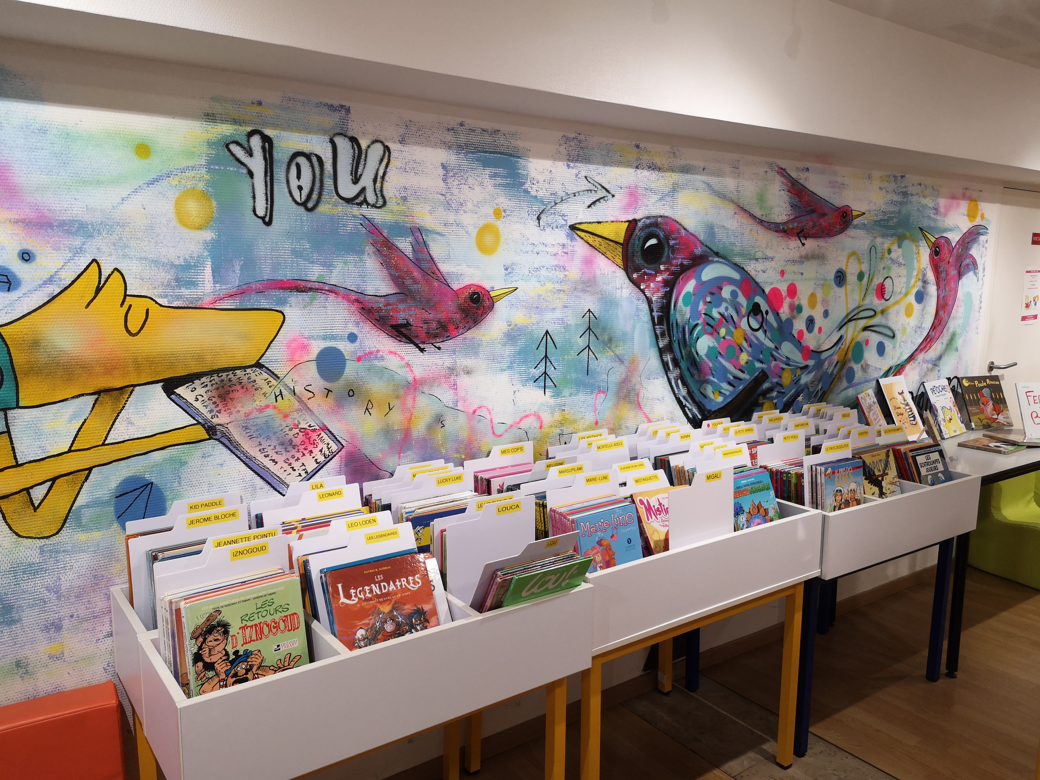 En mars 2016, à la faveur d'un projet avec le local jeunes, l'artiste bordelais s'est installé dans l'espace jeunesse de la médiathèque Émile Gaboriau.