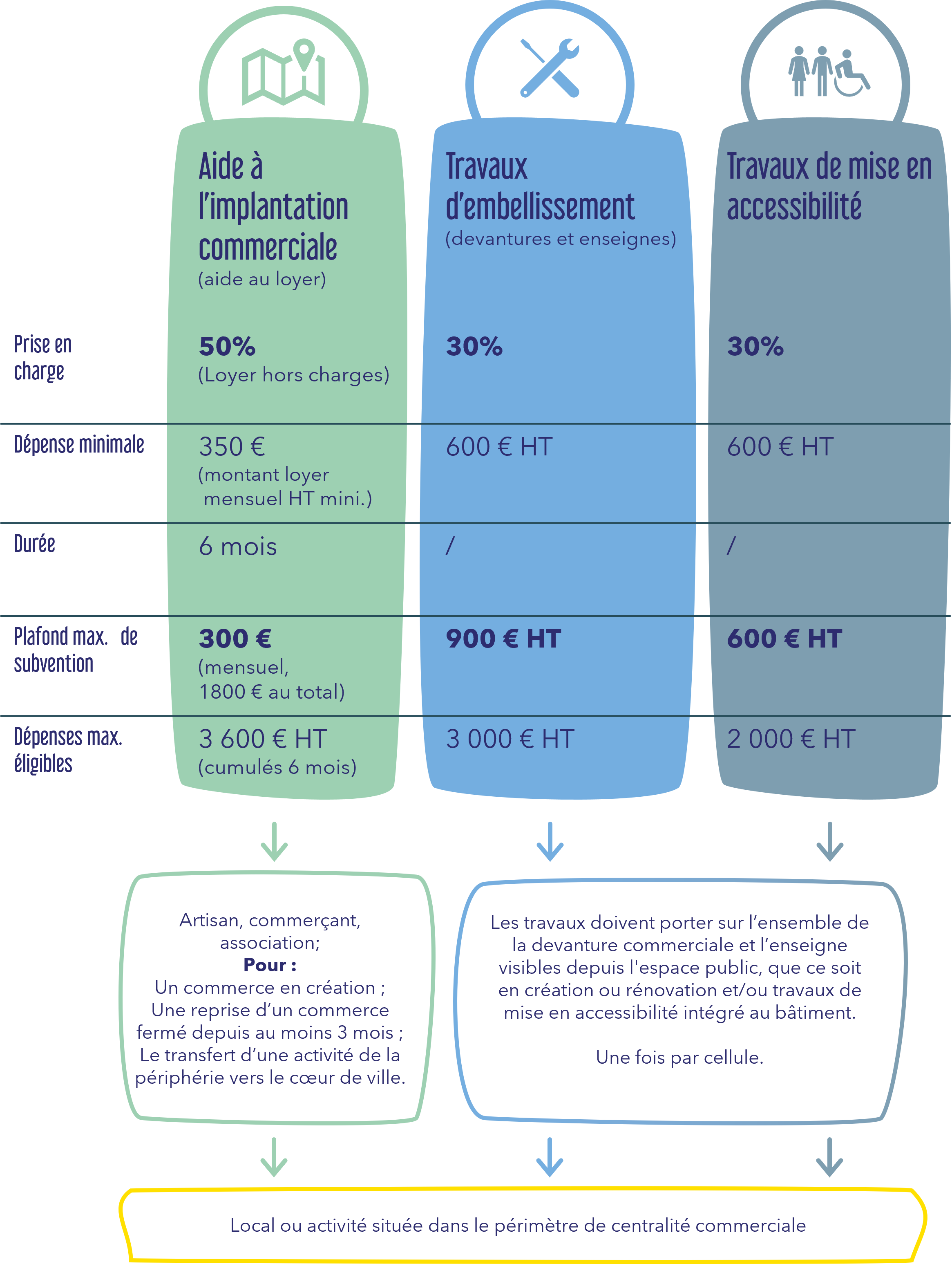 • inciter l’embellissement et la mise en accessibilité du linéaire commercial