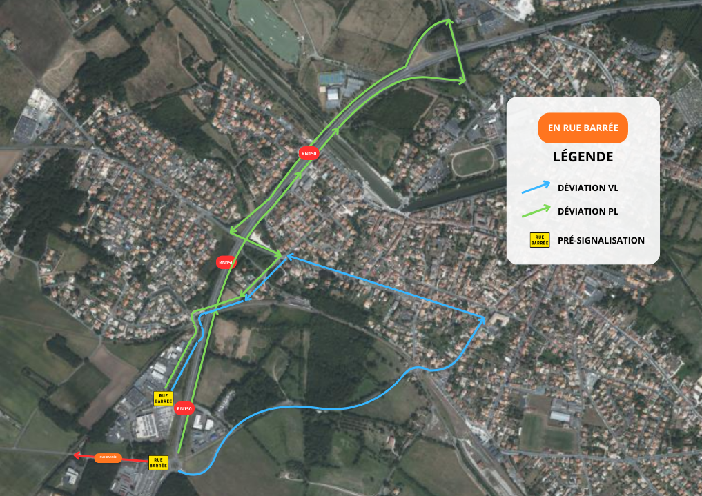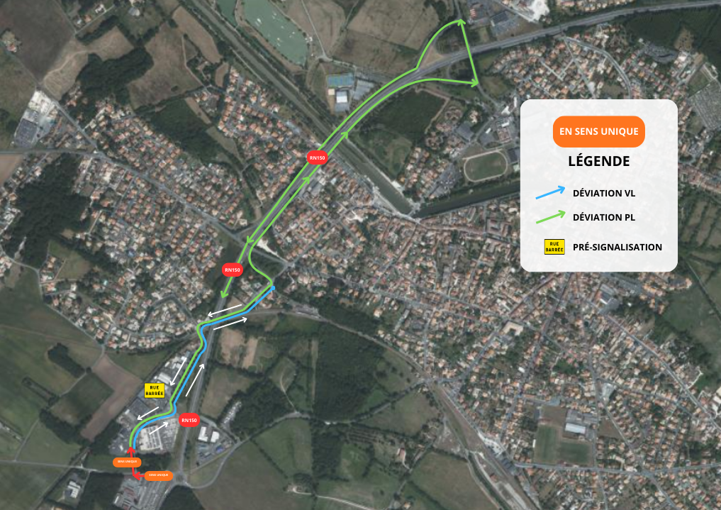 Des déviations seront organisées via le port et la rue de Campet, dans un sens comme dans l'autre. Une circulation sera maintenue autant que possible pour l’accès aux propriétés riveraines, en concertation avec l'entreprise.