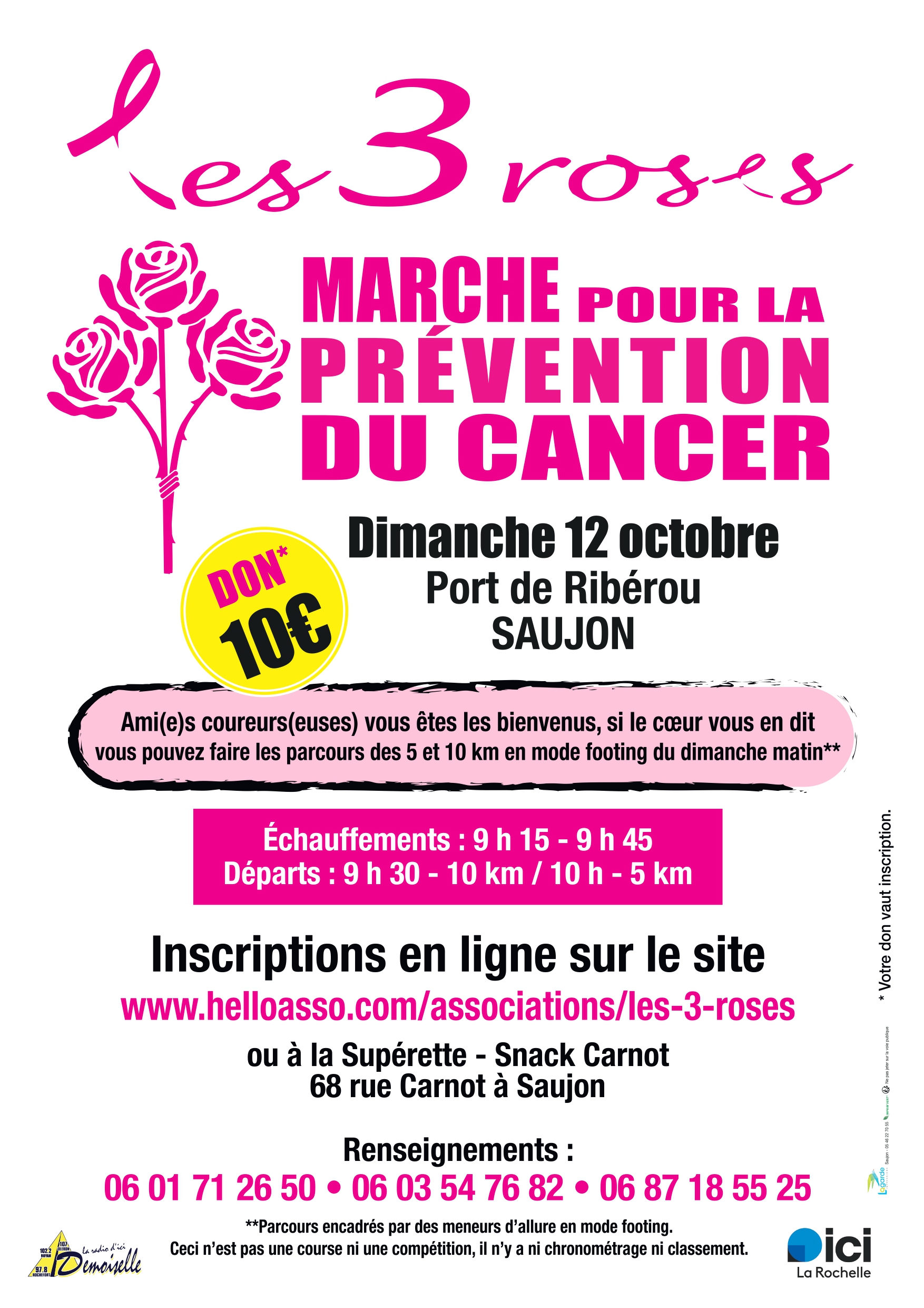 Comme tous les ans à Saujon, la mobilisation autour de la prévention du cancer du sein est portée par Les 3 roses .